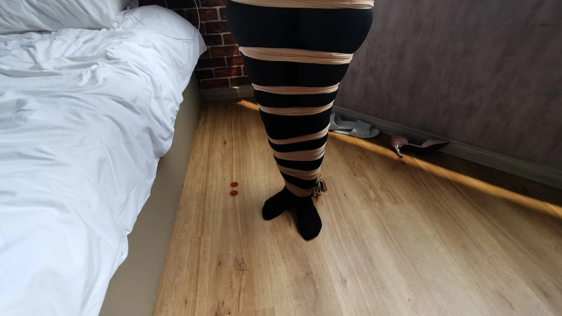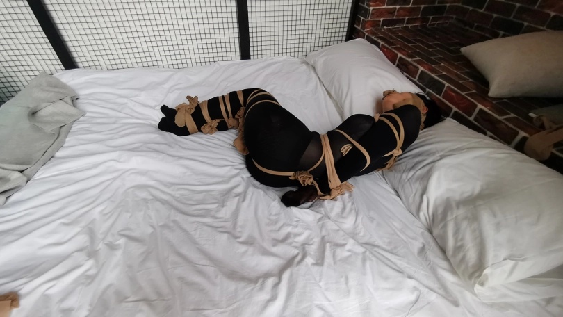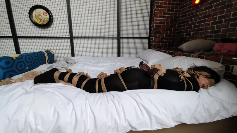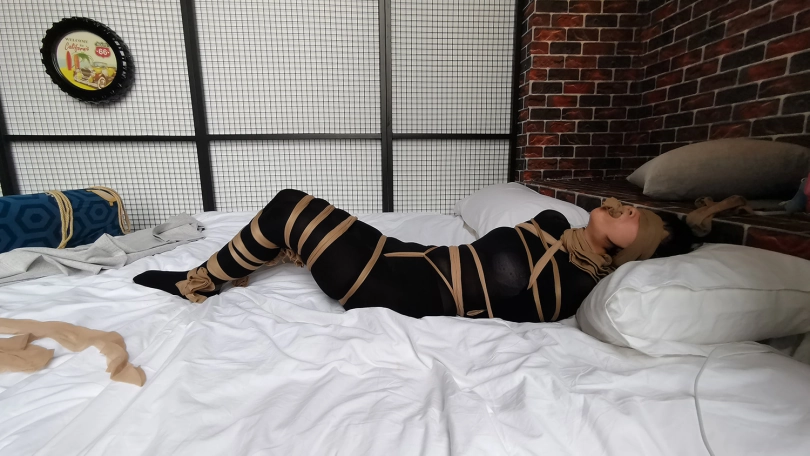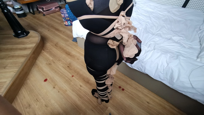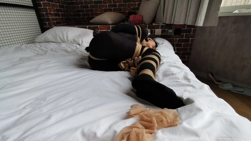【JS】琳洛-黑丝连体衣,全身连裤袜紧缚 蒙堵