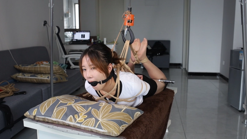 这是婉婉除了订拍版权视频之外的第二次拍摄,婉婉柔韧性还不错,腰好,驷马反弓起来送上GC。口球堵嘴口水不断,GC颤抖在绳子的束缚下着实诱人。