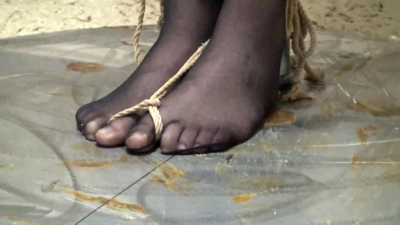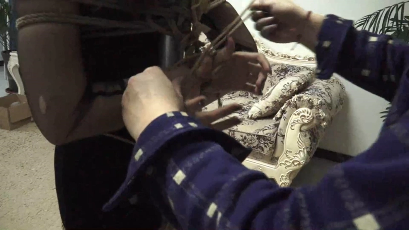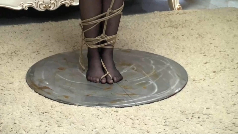 之后模特又被紧密的驷马捆绑起来,脸上被绑上了自己的高跟鞋,闻鞋羞辱与驷马捆绑的痛苦让模特奋力挣扎,然而她却没有逃脱的机会...........