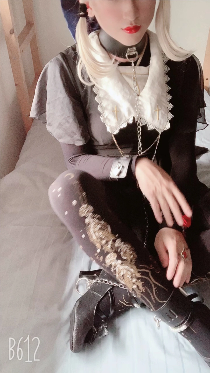 这条是修女的Lo裙,好久之前买的了。其实裙子底下还捆了龟甲,弹琴的时候一直在摩擦,/色。