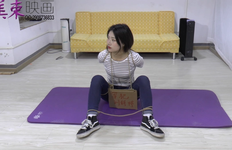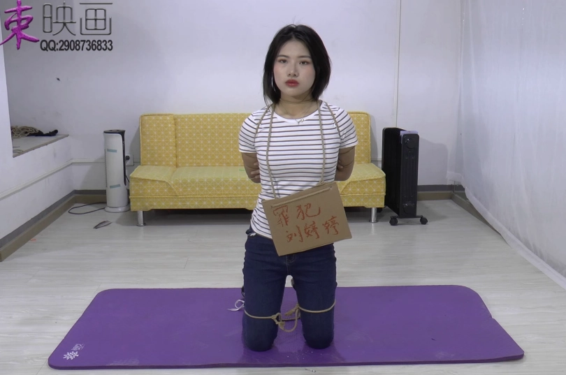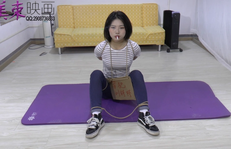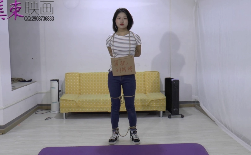 反扭,反铐,苏秦铐,脚镣,五花大绑,打屁股,挂牌女犯。紧身牛仔裤,帆布鞋。