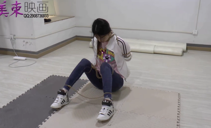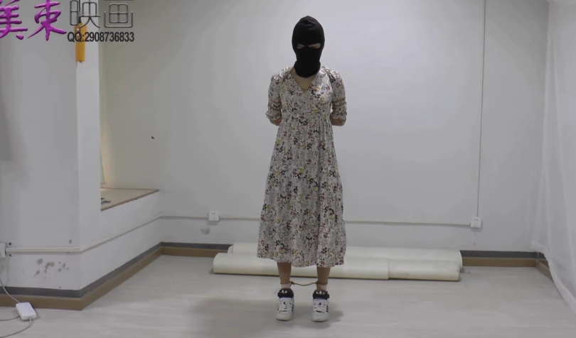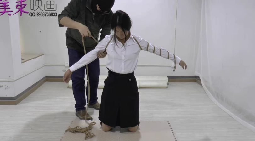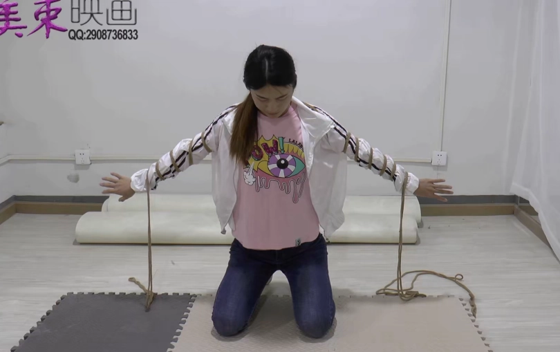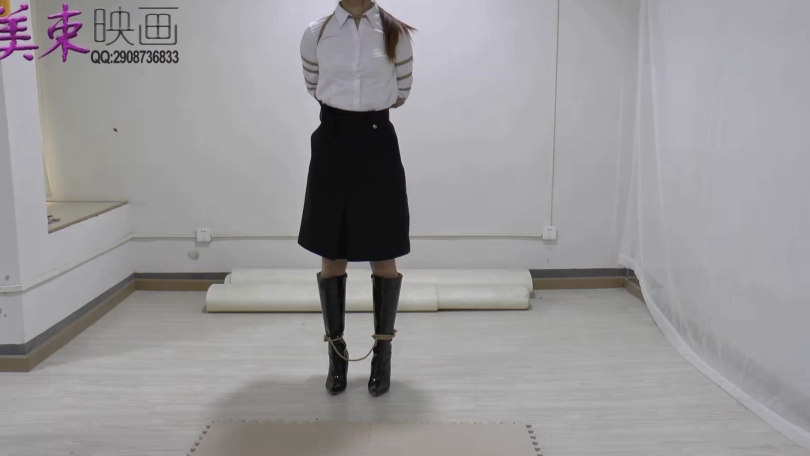 三套服装,t恤紧身牛仔裤,碎花连衣裙,ol裙装长筒靴子。反铐,押解,五花大绑等。