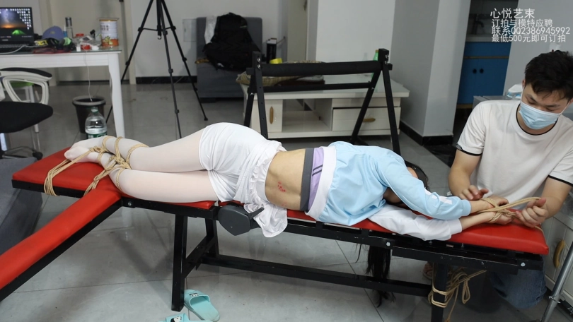 拉拉队长下集来喽,这次把白丝美腿倒置绑在老虎凳上面更方便我上下其手的骚弄,在配合玩具棒棒的骚扰险些翻滚掉落了。