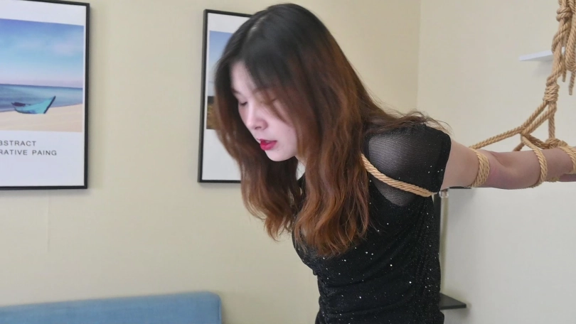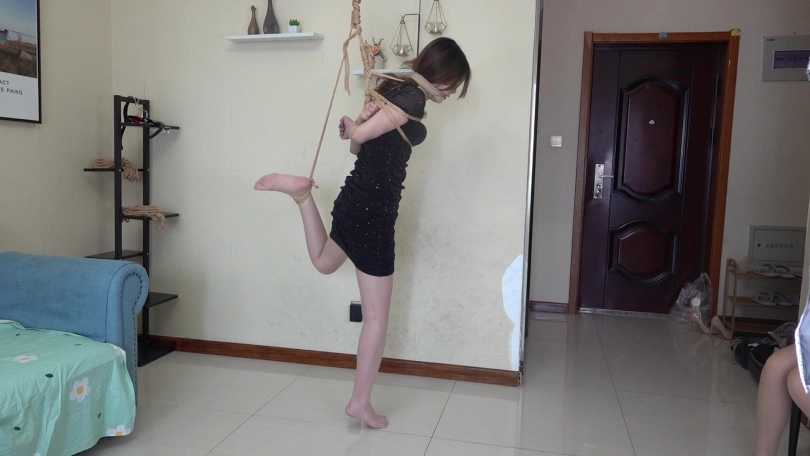 小网红瑶瑶身穿性感夜店风短裙,黑色亮片裙搭配性感肉丝,化身夜店陪酒女郎,先是被直臂曲臂吊缚,又痛苦地被单腿吊缚起来,脱掉高跟鞋,只能赤脚踮脚才能减轻身上的痛苦,玉足又被折磨地痛苦不堪,后来竟轻声啜泣起来。