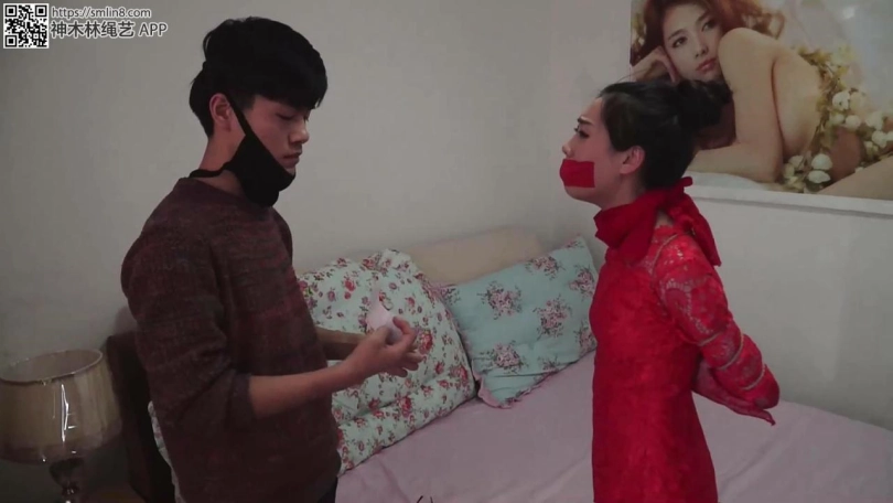 未婚夫又用红胶布封住了七妹的眼睛和嘴巴。