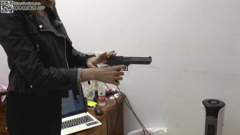 于是她跑到卧室里拿出了绳子来把刘琪琪绑了,并戴上眼罩和口球。