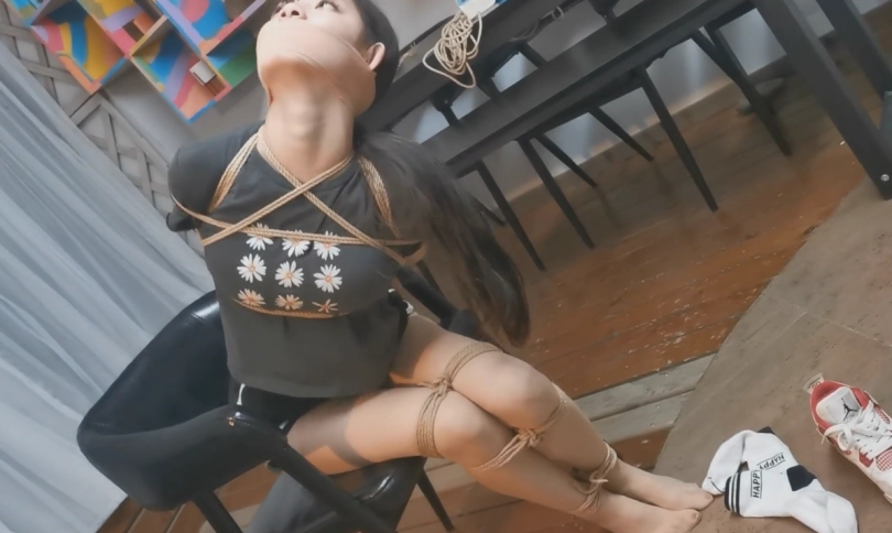第一幕:珊珊逐渐从睡梦中醒来,迷迷糊糊中发现自己正在一个空旷的房间里,周围的设施很简单。晃了晃脑袋,感觉头又重又沉,下意识的想用手按一下太阳穴,发现,双手在背后紧紧贴在一起,这才发现,自己全身都被绳子紧紧捆绑着。珊珊瞬间清醒了,想要大声呼救,才发现,嘴巴里似乎被塞了几双丝袜,外面被胶带紧紧的缠绕了几圈,怎么也吐不出来,只能发出一阵阵呜呜声。珊珊开始疯狂的挣扎着,想要解开身上的绳子,奈何绳子捆绑的太紧,一圈一圈勒进肉里,无论珊珊怎么用力,也丝毫不见绳子有松动的痕迹。正当珊珊绝望的时候,房间里响起一个女孩子的声音.