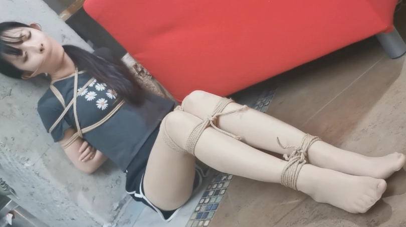 珊珊:这种捆绑的方法也太难受了吧,双腿和双手都被反绑到身后了。这拘束感,比上一个绑法强多了。而且,越动越紧。这下可真是动不了了。