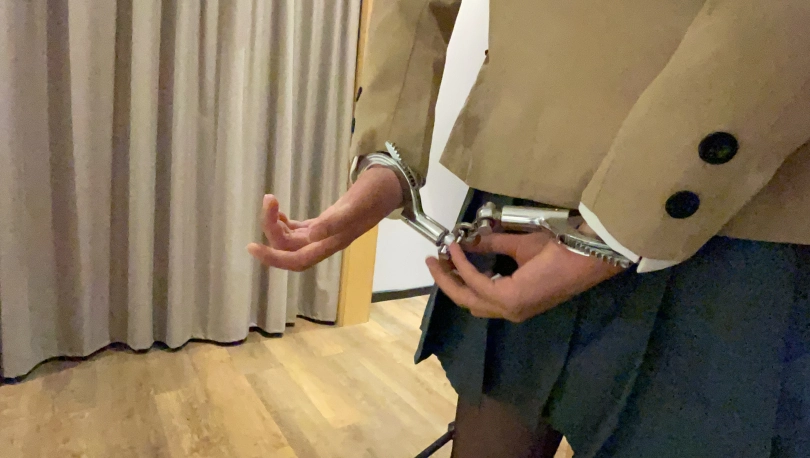 可爱的林念念穿上了麻衣学姐衣服,将双手伸出让我把她铐起来