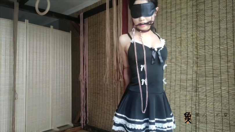 【象人】02小0-黑丝女仆10CM高跟-全程蒙眼,手铐脚链单柱固定,流口水特写,最后直臂驷马放置迷晕。