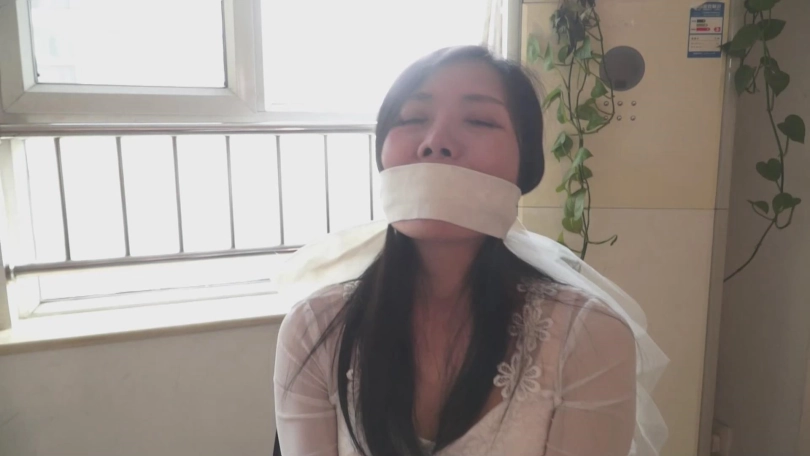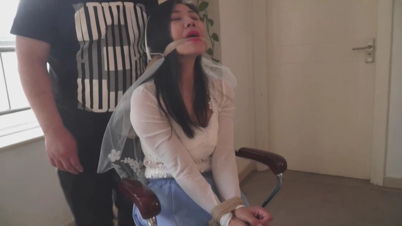 【逍遥】《女井林静小故事》002(李然主演,黑丝长裙及头纱,勒嘴持枪,大字型床上捆绑)