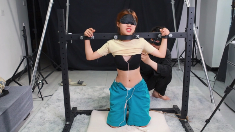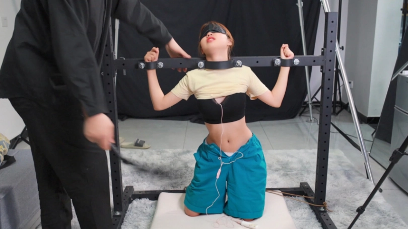 00后的小萝莉今天刚跳舞回来,一身运动装扮单马尾,充满的青春气息,可惜活力四射的青春气息被一副铁架牢牢禁锢。身后的双脚也被绳索牢牢限制。至于为何如此,因为之前她放了我两次鸽子,所以我觉得应该让她找清楚位置哈哈。先后经过筋膜枪,TD强制刺激,TK瘙痒折磨。小萝莉反应很可爱。