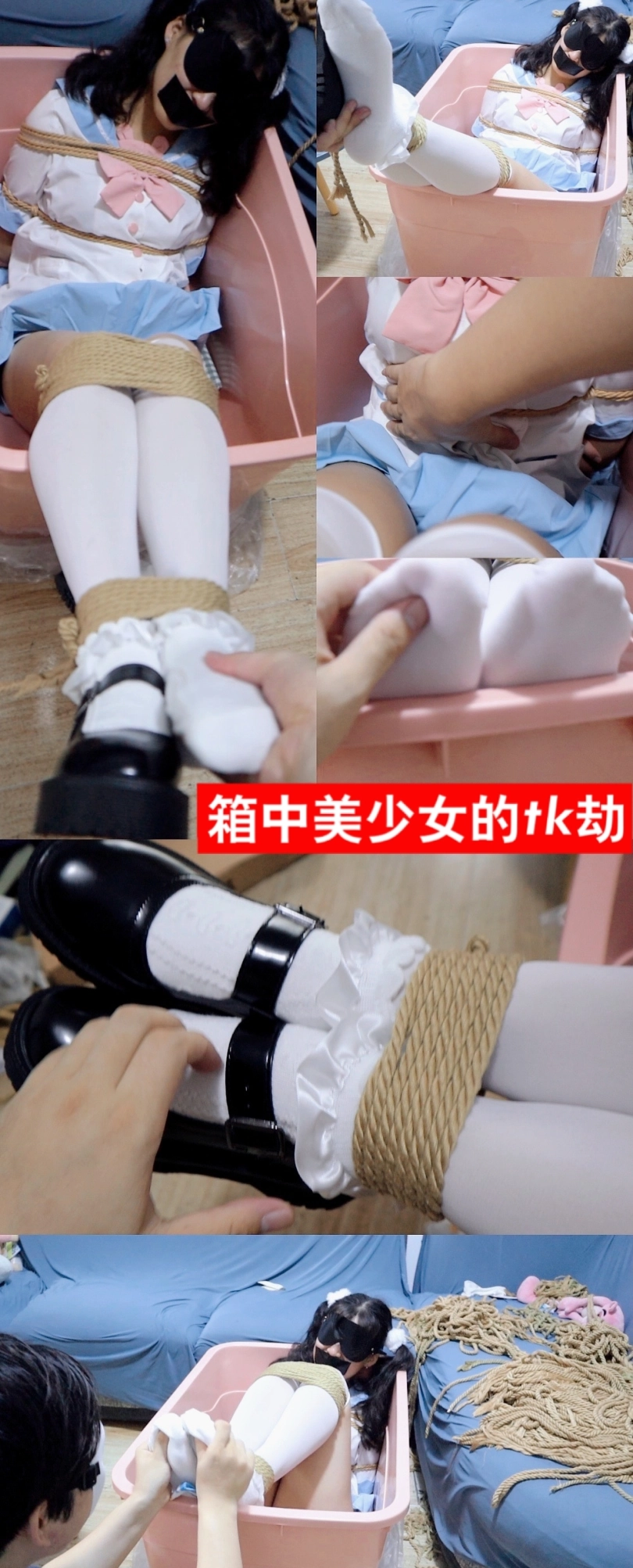 【荷仙少女】箱中美少女的tk劫难,一开头就是一个超可爱的小姐姐被紧紧绑在一个小箱子里拼命的挣扎和呜呜呜的哭喊声, 这时一双手慢慢的靠近这个可怜少女的身体,慢慢脱下她小皮鞋,随着这双手碰到了小女生穿着洁