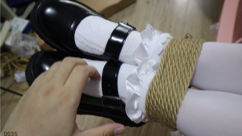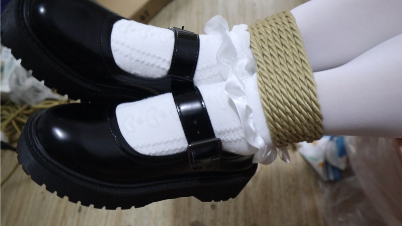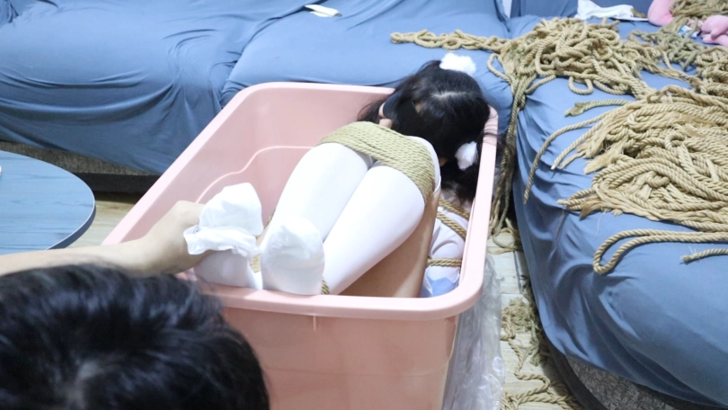 小姑娘整个身体身体浸在箱子里,td放在绳结处穿着白丝+棉袜套着黑色小皮鞋小脚和一双美腿露在箱子外无助的晃动着,