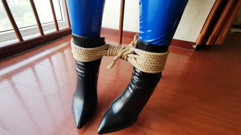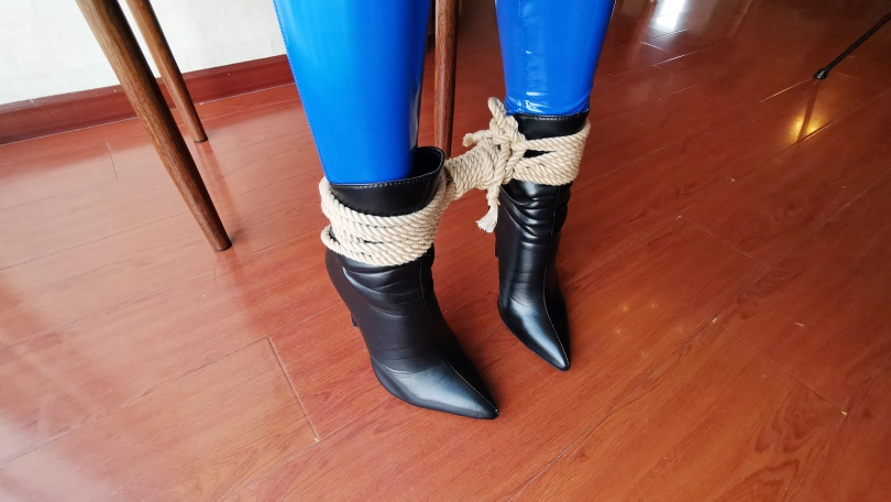 【JS】瑾萱 蓝色胶衣 胶带封嘴 椅子束缚挣扎