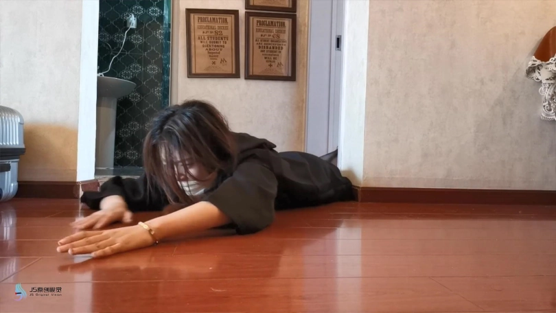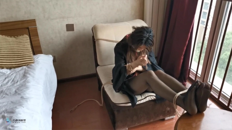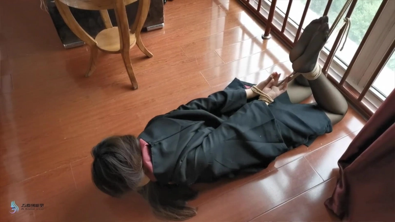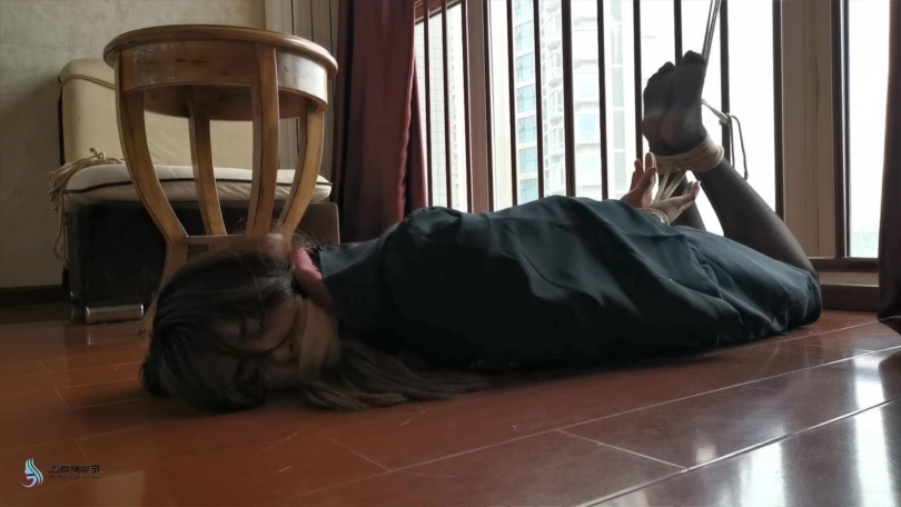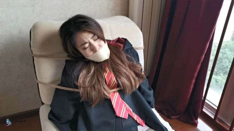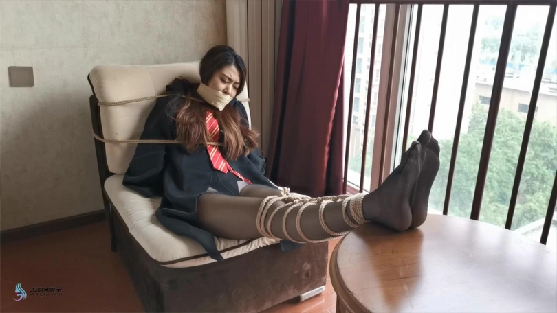 学姐醒来时发现自己躺在椅子上,想要起身发现自己的身体被某种力量控制动弹不得。双脚突然抬起放到桌子上,并自行的并拢在一起。这时绳子从四周伸了过来,开始缠绕她的双脚,腿部,胸,手,很快她被绳子束缚在椅子上,嘴巴也没绷带缠绕,只能发出“呜呜”的声音。经过一番努力,她终于挣脱了束缚,就在她奔向客厅时,突然一根绳子窜出来,缠住了她的双脚,并将她拉回卧室。。。