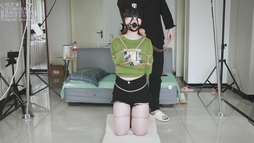 【心悦艺束】筱筱绿色上衣柱子驷马拘束马具口球堵嘴