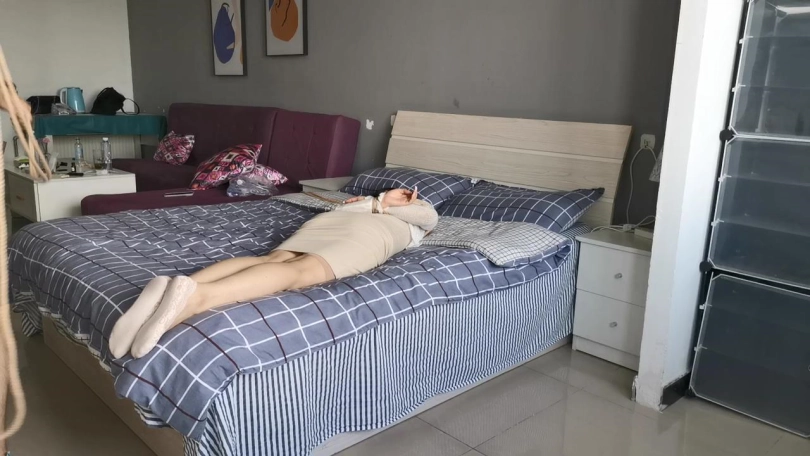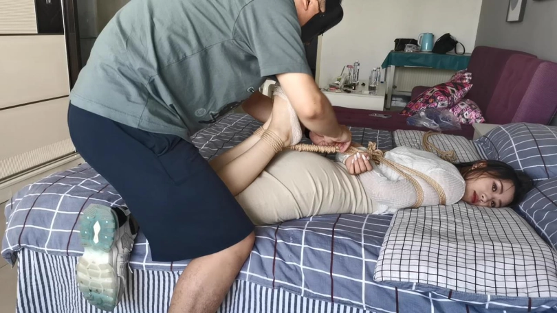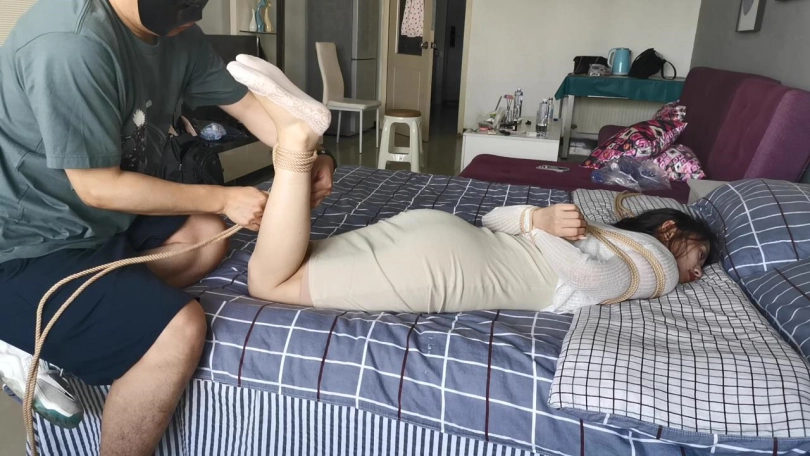 很好奇,每次把艾可捆绑好后,让她试着自行挣脱,她总是习惯性的顺便把自己的袜子脱掉,这是什么操作?方便脱困么?下次让她穿连裤袜,看她怎么脱。