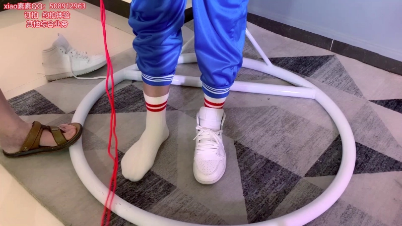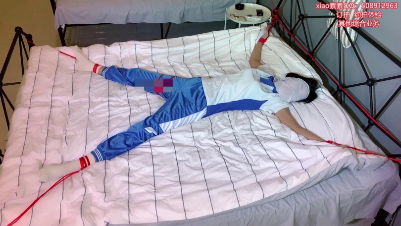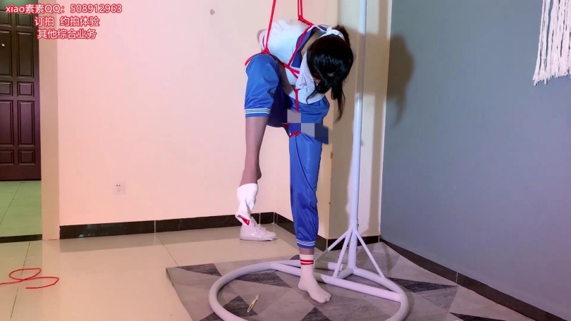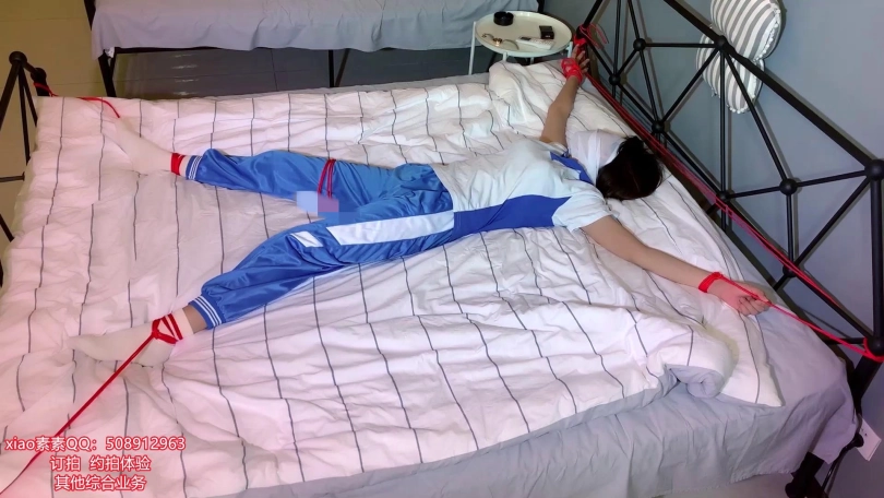 【xiao素素】学生服高邦白鞋 红条白袜 配红绳 捆绑单脚吊 脚尖顶地 和 大字床上捆绑 上下集