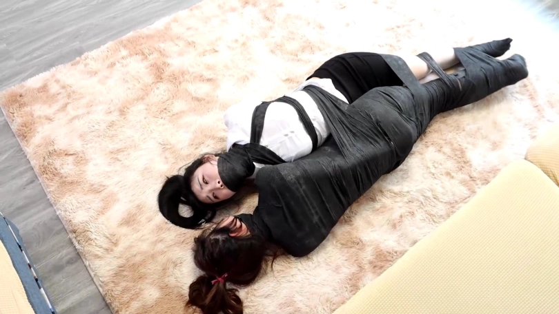 【逍遥】《黑丝与白丝的白领囚禁03》白丝丽人帮助被变成木乃伊的同胞 但最后却被绑缚在一起了