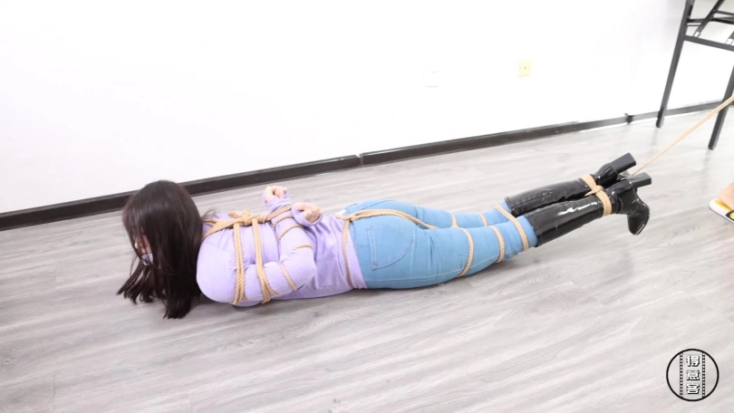 肤白貌美大长腿模特星宇主演。女大学生由于不理性消费,导致手头缺钱,误相信网络兼职被坏人绑架的故事。片中女主被捂晕,上半身五花大绑,下半身股绳,捆了四道绳子,嘴上用毛巾严严实实塞上。拼命扎挣努力逃脱,一蹦一跳的不要太好看。坏人呢,当然不会给你逃跑了,在她快要成功时,把她抓住放倒,逼她像条虫子一样往客厅蠕动爬去,一路对她拳打脚踢,还嫌她爬得慢,那干脆用绳子绑上脚,倒着拖回去吧。到了客厅,坏人对她搜身,接着捏住她嘴巴,把白袜子塞进嘴里,外面再用胶带封上。脱了她的靴子,又是一顿挠脚心,挠全身的TK,坏人又觉得绑得不够紧,扒了她外套,用直臂缚加驷马倒攒蹄捆啦起来。嘴巴呢,更是塞入白袜子,戴上口球,外面胶带封上。最后保险手指缠绕,坏人走后, 女主拼命往门口爬去,她能成功吗?