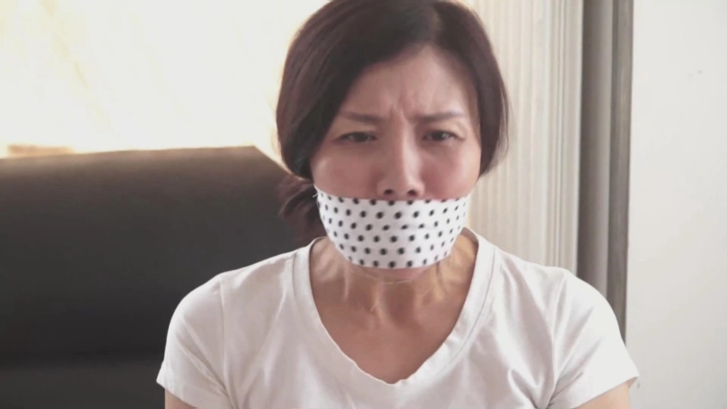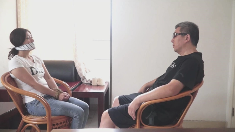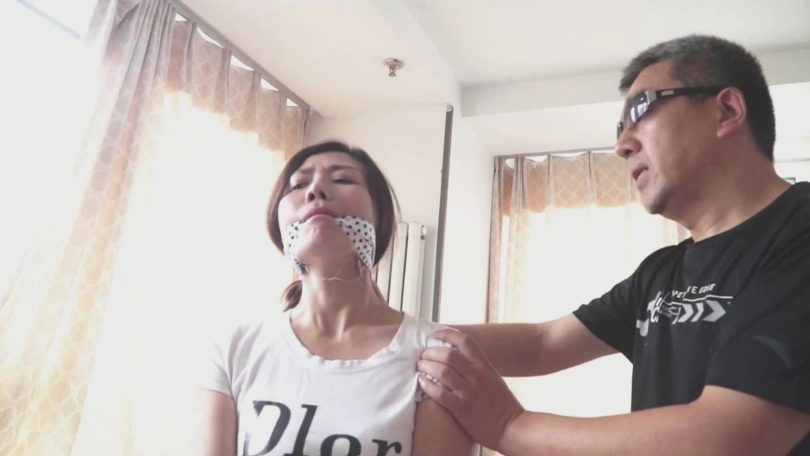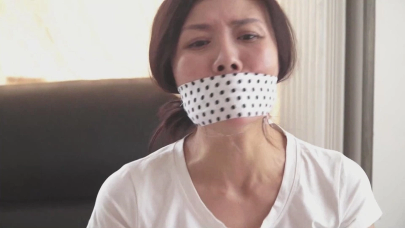 女井队长林静,穿着T恤牛仔裤,裤子里面还穿了肉丝袜。她潜入到匪徒家中,发现关键证据,却被匪徒发现。匪徒挟持林静为人质逃脱,接着逼迫林静用日本影视中才会出现的斑点布蒙住自己的嘴巴,然后将林静绑了起来,接着布置好枪械陷阱。当机关快要触发的一刻,林静只能用被蒙住的嘴发出呜呜的叫声,并且疯狂地挣扎摇头……之后,匪徒又将林静带到另外一处,脱掉林静的裤子,林静露出了穿着丝袜的屁股。然后用毛巾塞住林静的嘴,又用肉丝袜蒙住林静的眼睛,并将她绑成了驷马。可怜的女井林静只能在桌上无助地挣扎……