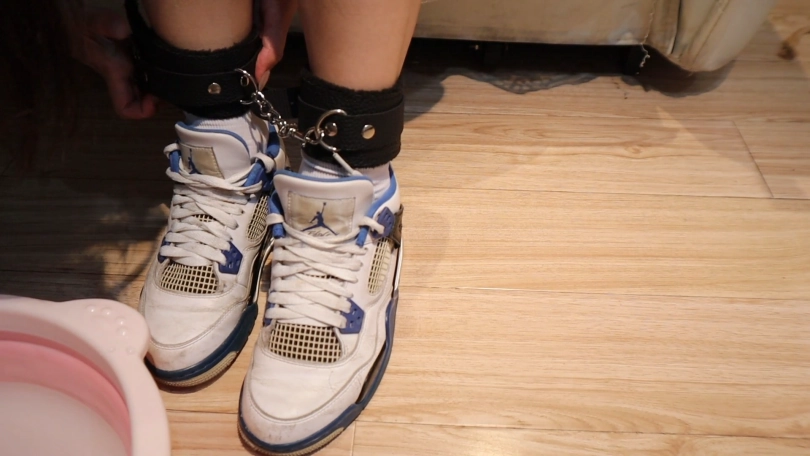 女孩子的挣扎很剧烈,见面即绑架迷晕 然后又让萧玥自己带上铐镣,放到热水里增加白丝脚敏感性,又把占过水的白丝袜塞到女孩子的嘴里,最后裸足出境