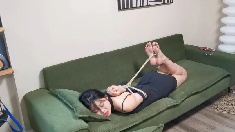 小r表现得也很好,主要是堵嘴后手观音驷马加挠脚心,小r的jio挺敏感的,可怜被绑得太紧,只能左右扭动,但一切都是徒劳的。