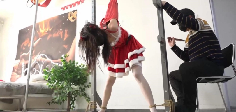 醒来后的眼镜小哥让小莉重新换上了一套圣诞服装,就在他玩的开心的时候,梦居然醒了。而另一边的小莉似乎也做了一个奇怪的梦。不过看样子眼镜小哥对于白天遇到的姑娘是朝思暮想了,于是快递小哥假装为小莉送快递上门。小莉接到快递后发现包裹里居然是几捆绳子,身后站着的眼镜小哥走到小莉身后说:“我送你的礼物喜欢吗?”眼镜小哥终于也是出手了,已送快递的名义成功混入小莉家中,接下来自然免不了将她好好的捆绑起来了~