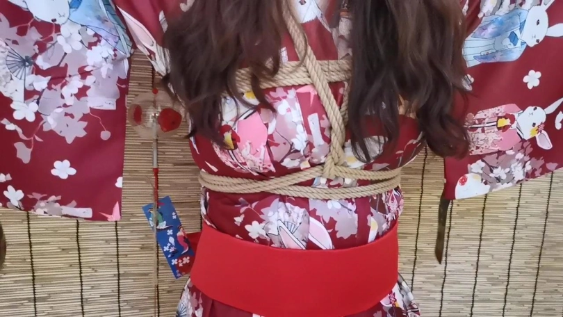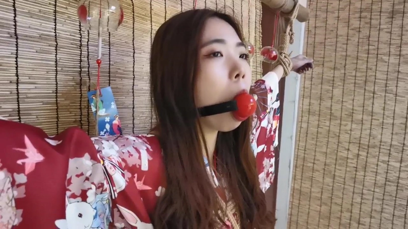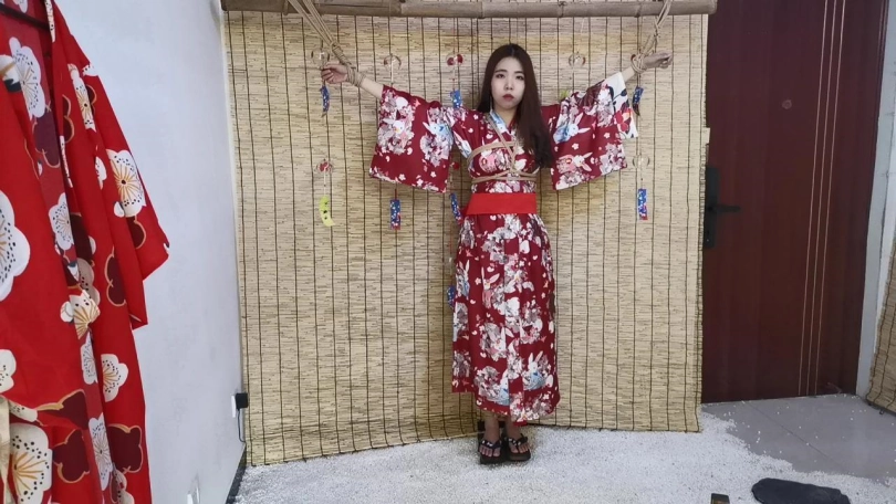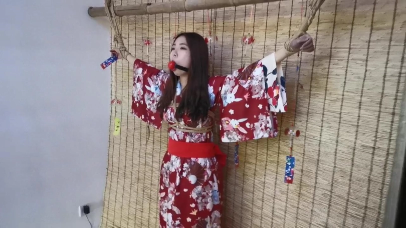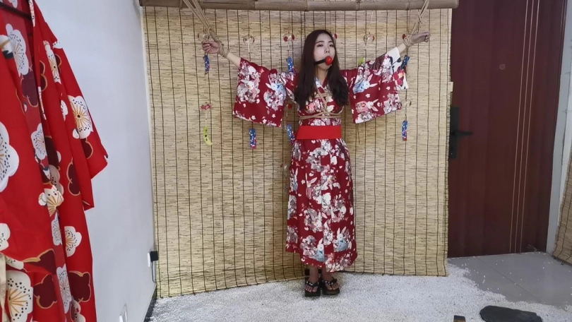【JS】曼文 和服双手吊捆绑 手部变色 口球堵嘴