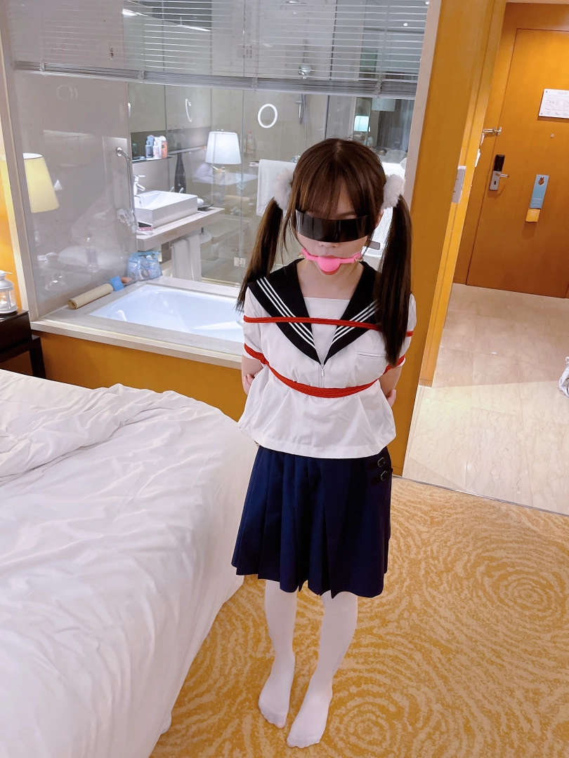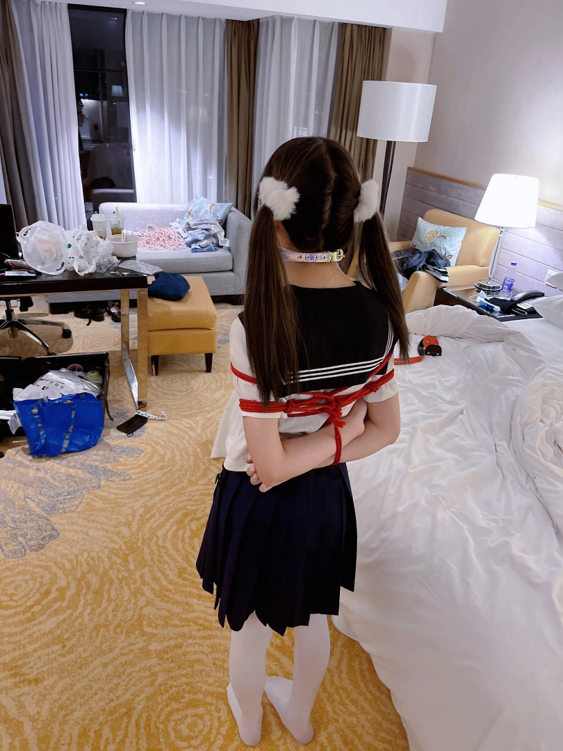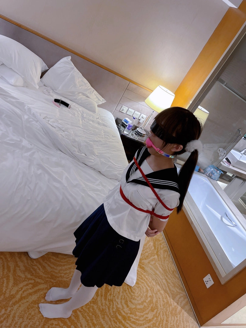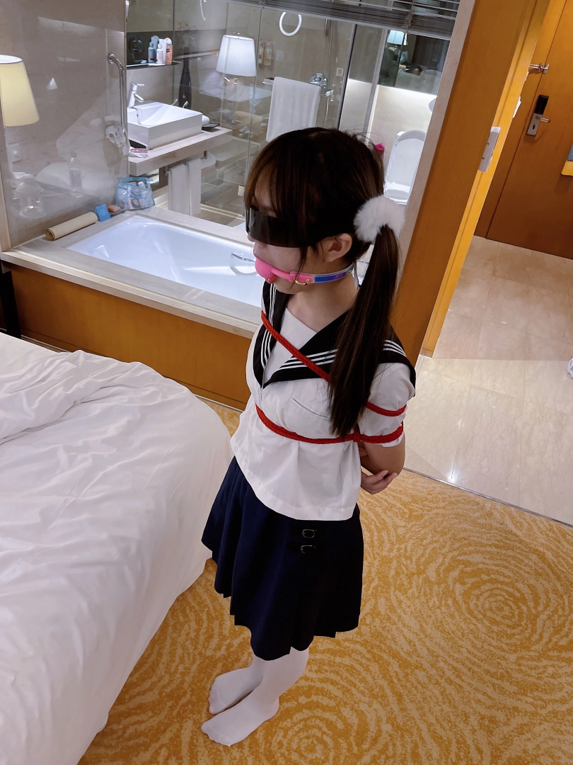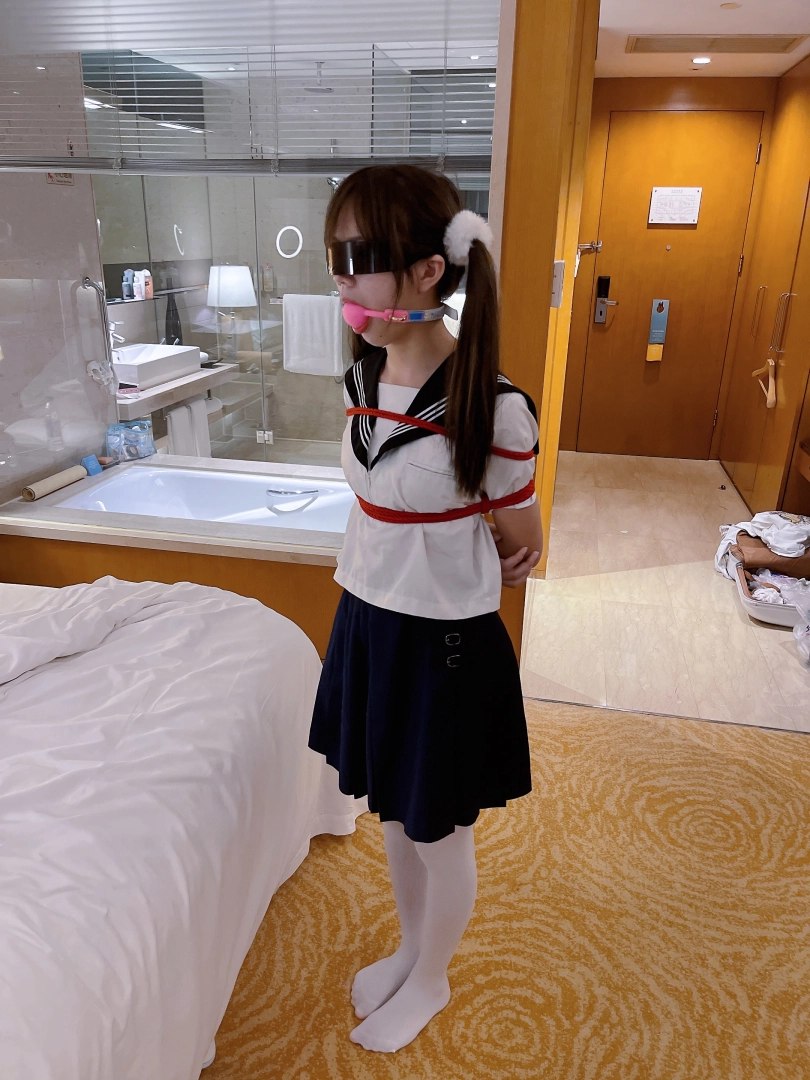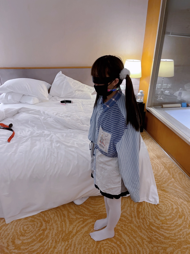 茶茶一直很害羞,这次打算带茶茶尝试羞耻的伪装拘束:把茶茶绑好后带上口球口罩,披上外套后出门。茶茶需要穿过酒店大堂、门卫、保安并在室外散步一阵子才允许回来哦~