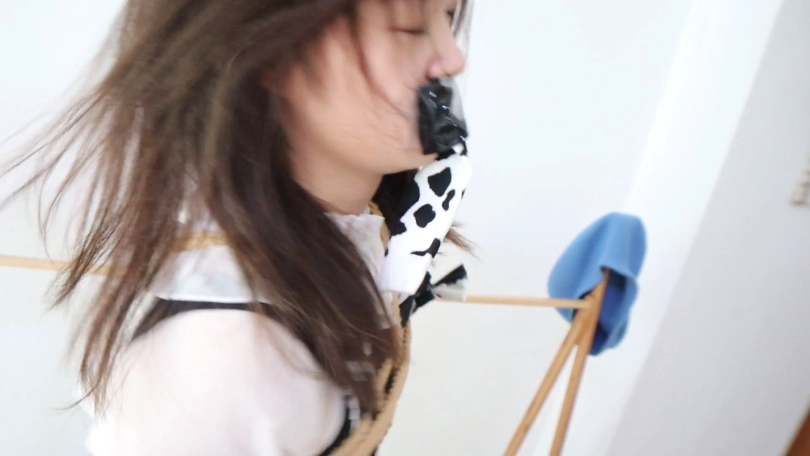 剧情站立起来的牛奶洛丽塔美少女,铐镣安上,往嘴巴里塞上和脚上穿的一样的超甜牛奶袜,