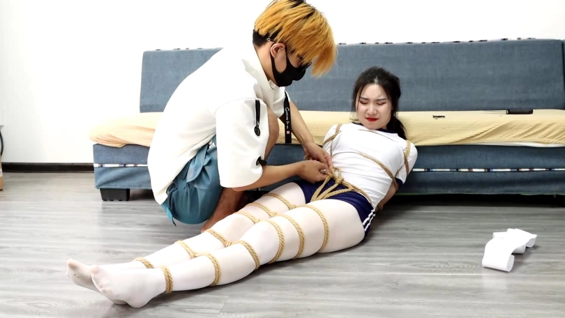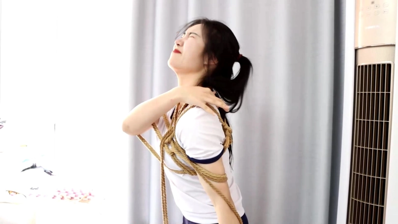 性感的白丝日式体操服美人收拾家里,意外打翻箱子里面的绳子散落在身上,美女越挣扎结果绳子反而捆绑的越来越紧,最后居然自己将自己牢牢捆绑了。