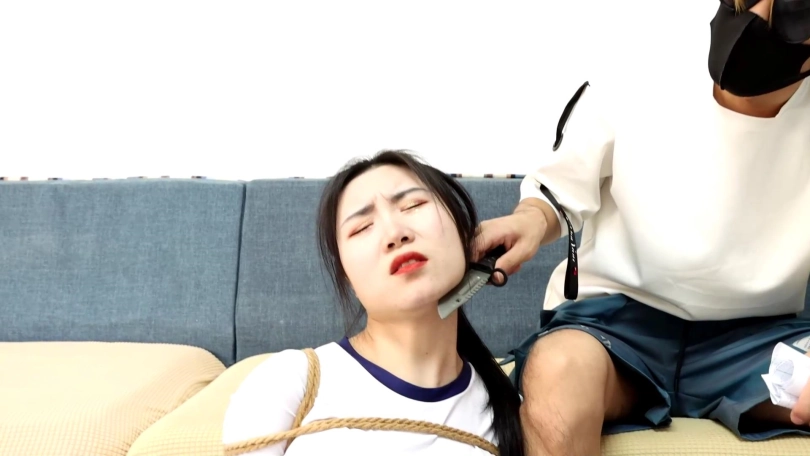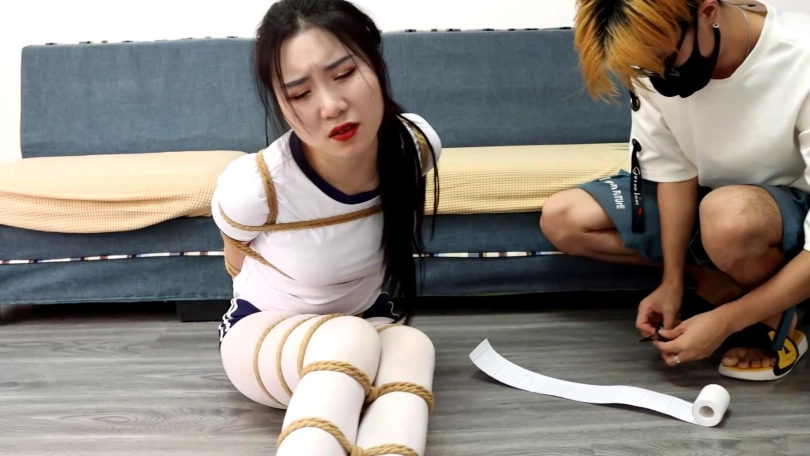 倒霉的事接踵而至,美女还没挣脱开小偷又闯入了家,美女全身捆绑把小偷都吓了一跳,于是可怜的美女被小偷各种折磨玩弄逼问家里的藏钱,最后把美女的手用胶带包裹成球,这下美女彻底解脱不了了。。