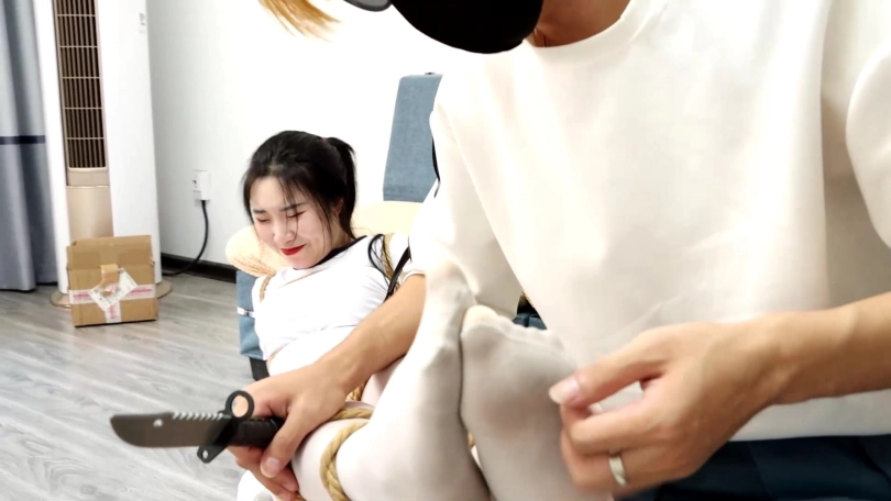 【逍遥】《白丝笨蛋美女的奇怪自缚01》笨蛋美女意外被绳子缠缚结果越挣扎捆绑的越紧 超有趣剧情~