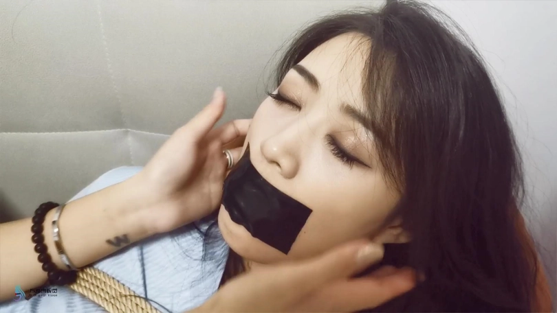 将艾可捆绑起来,防止她醒来求救,用丝袜塞进了艾可的嘴里,并用胶带封住。
