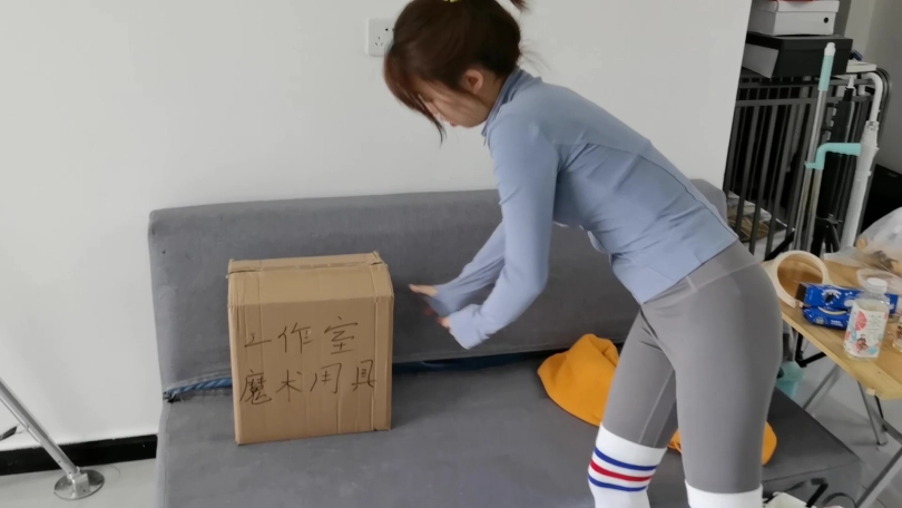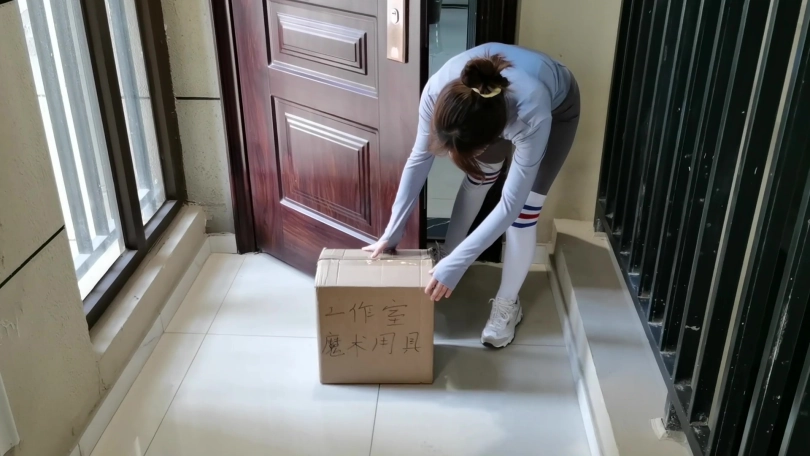 文文是一个芭蕾舞团的女成员,今天练习过后,她穿着一身运动型的打扮回家。她刚回到家后在门口收到一个不知名的包裹,上面写着「工作室魔术用具」,她把包裹放在沙发上。