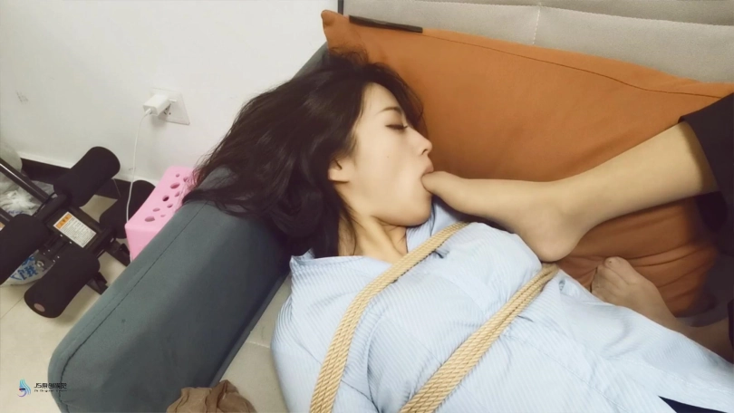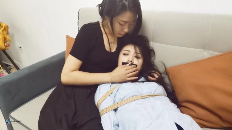 艾可逃脱失败,被瑾萱抓住。为了让艾可顺从自己,瑾萱重新用丝袜堵嘴,玩弄艾可的脚丫。并将自己的脚放在艾可的脸上舔脚。被带到卧室,换上连体衣,用丝袜捆绑玩弄。。。
