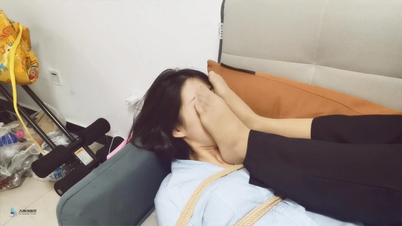 瑾萱用丝袜将艾可全身捆绑起来