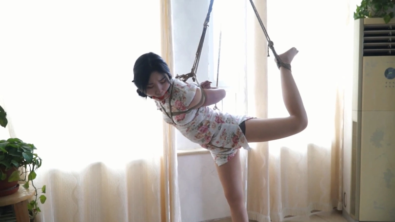 【逍遥】吴晗旗袍后手观音跪缚 打结股绳单脚吊 后高手极限驷马