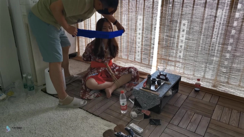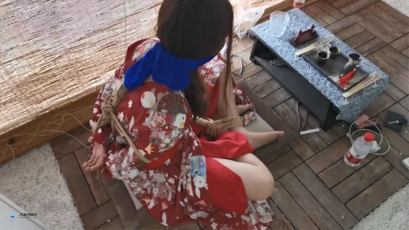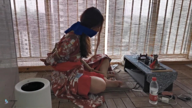 【JS】曼文 日式和服盘腿捆绑+丝袜蒙嘴