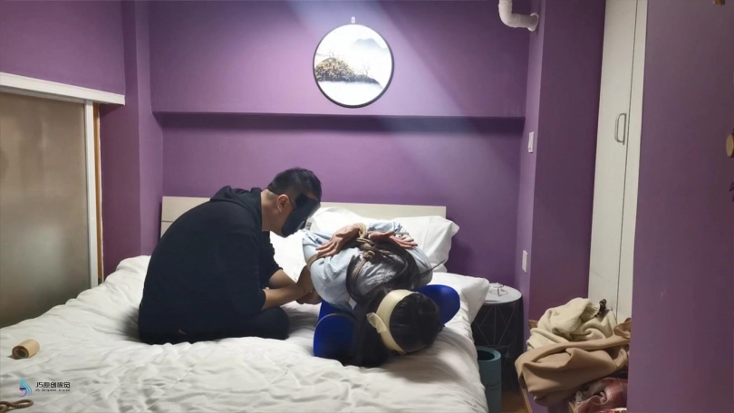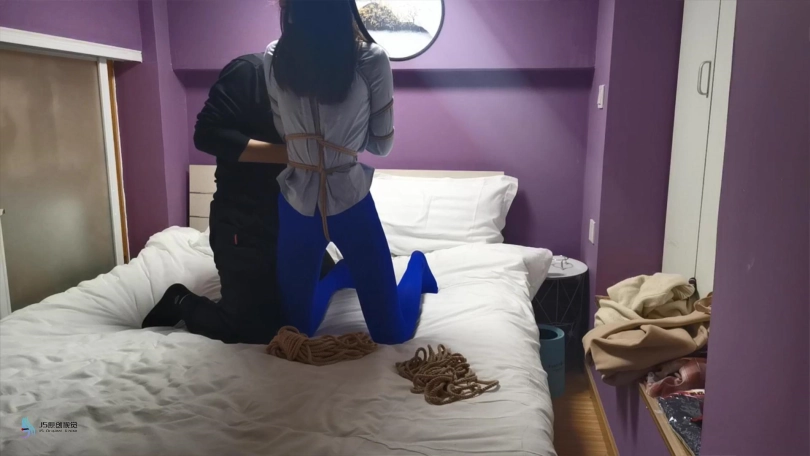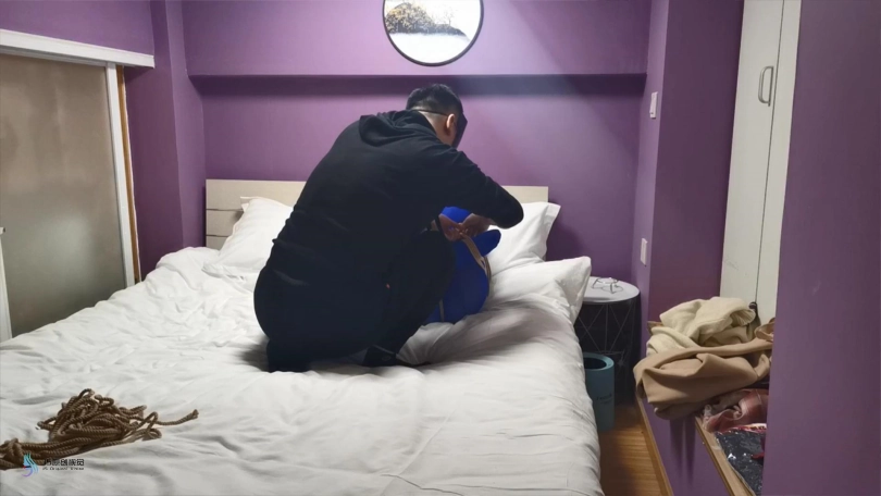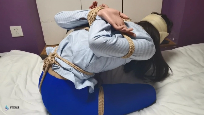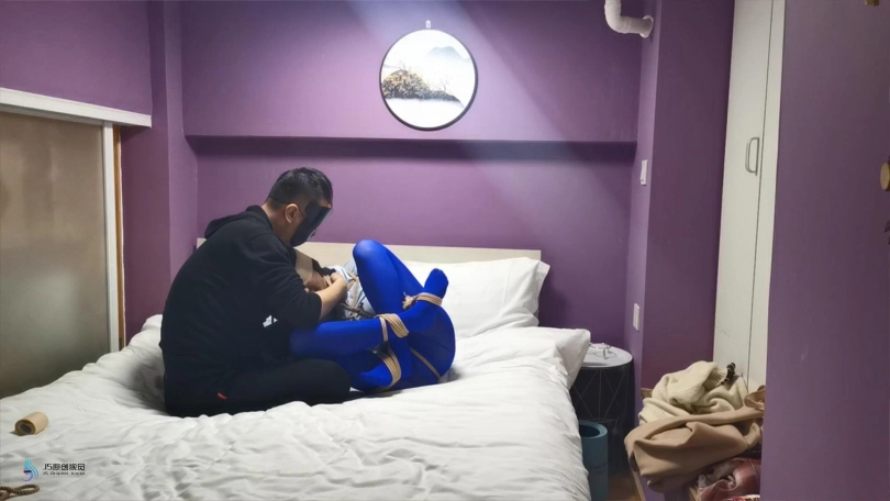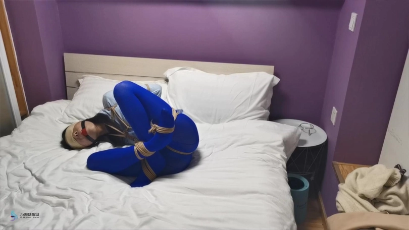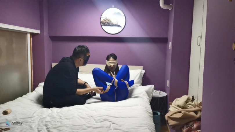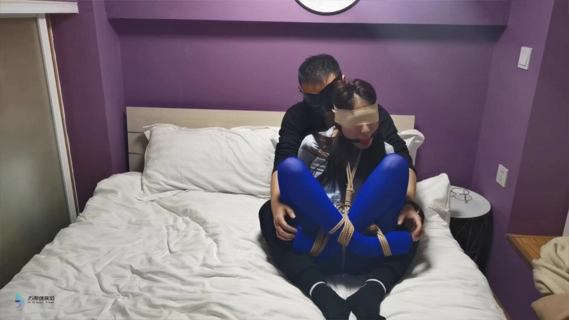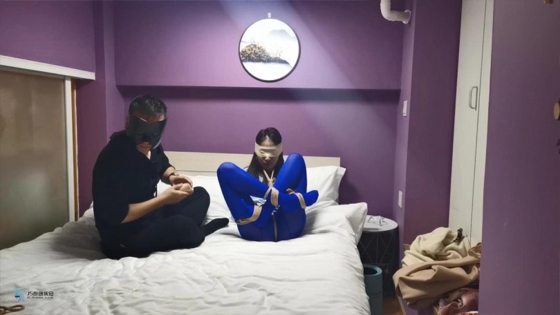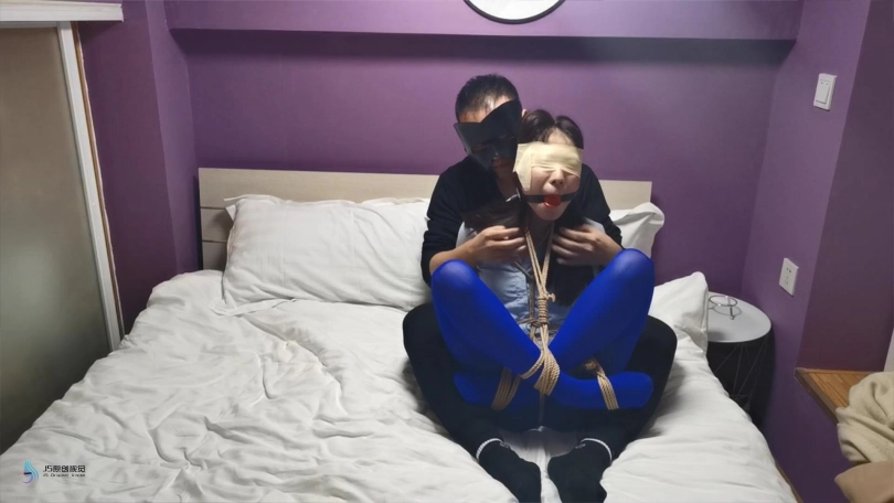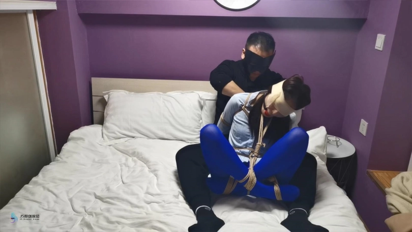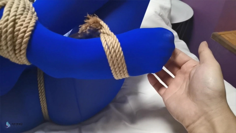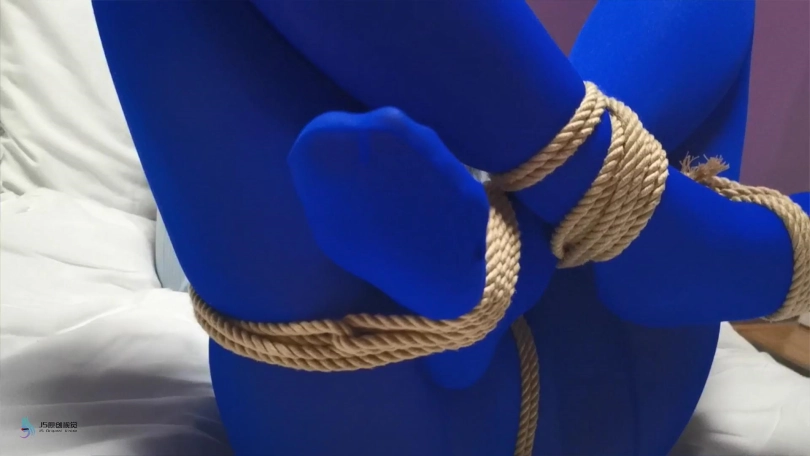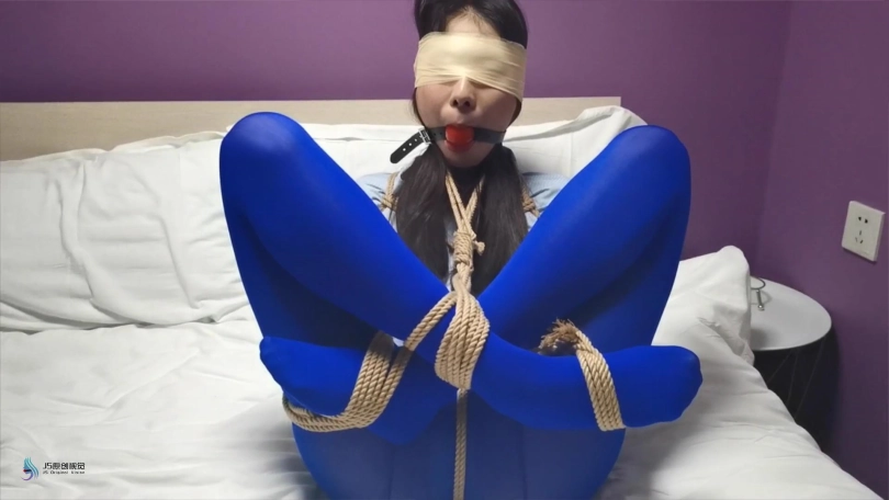 【JS】采文 性感蓝丝+后高手+股绳+团缚+蒙眼+口球堵嘴+挠痒+玩足