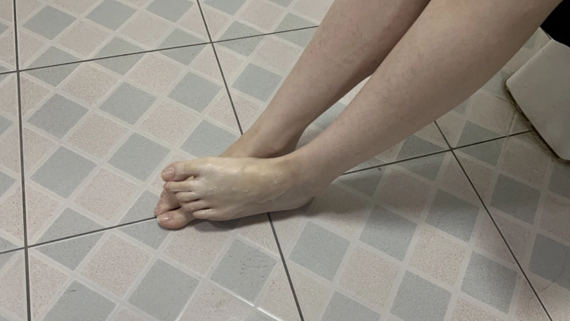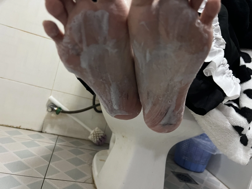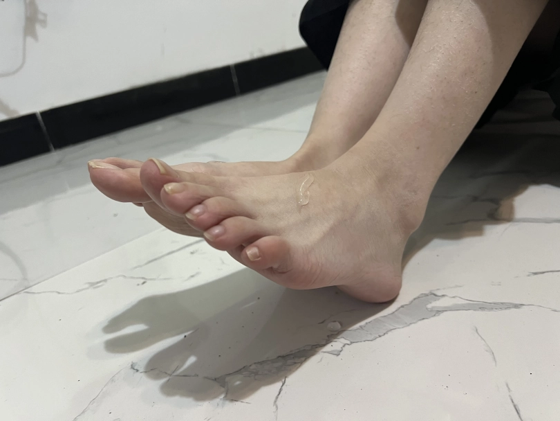 刚开始将可心的脚心涂上润滑油,让可心自己用脚脚玩不用手,玩三到五分钟让可心去浴室在自己将沐浴露涂抹在脚上自己玩并洗干净