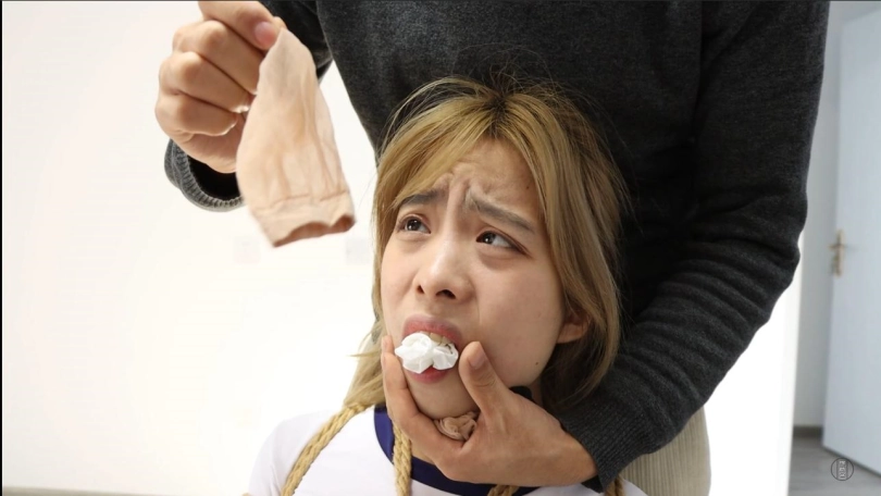 首先,感谢模特琦娜。娜娜在这次的拍摄中非常努力,因为剧本的要求是真实性挣扎,所以无论是股绳还是对双腿勒出肉的效果,这些都是我这个穷凶极恶之徒给娜娜设计的地狱式剧本,挣扎也好,绑着蹦跳也好,我要求了无数的姿势,无数的分镜,对于我这样一个对剧本质量和控制近乎变态的人来说,娜娜出色的完成了、甚至是超出了我的预期效果。当解开绳子,取出堵嘴后,看着娜娜身上一道道绳痕,我既心疼又欣喜;看到那双从洁白到踩脏成带有印记的白棉袜脚底,我既惊喜又内疚。总之,感谢娜娜这位美丽活泼又惹人怜爱的模特,感谢你出演了我的剧本,感谢你为我们呈现了这么好的效果。