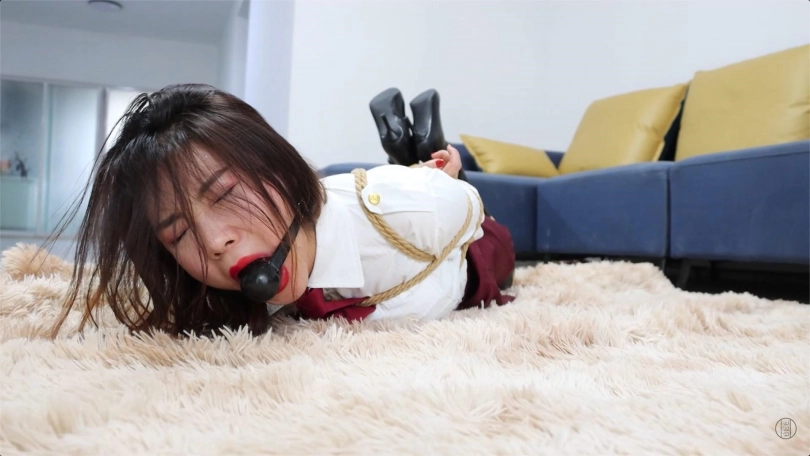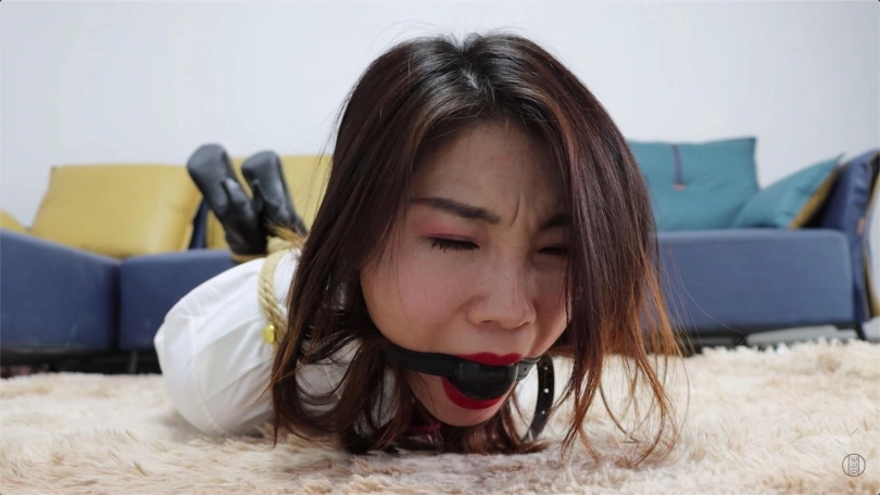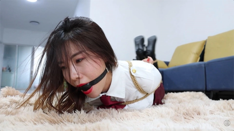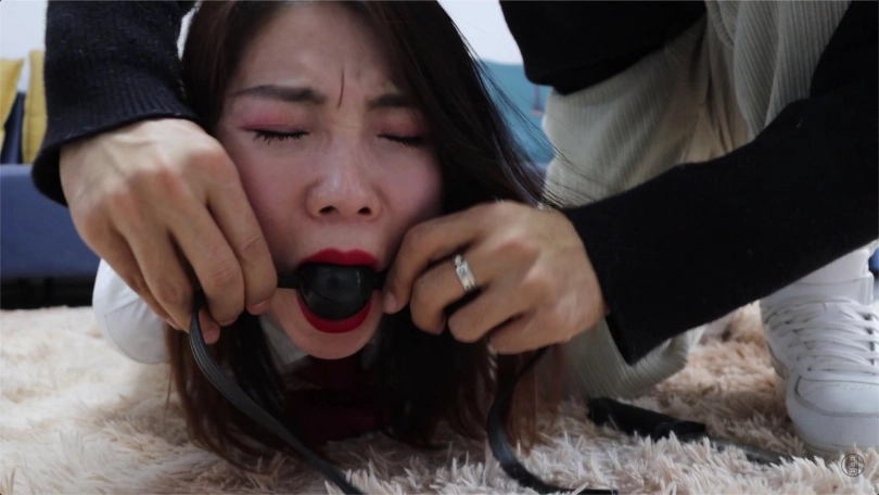 黑子将上半身捆绑好的含含放在了地上,开始捆绑她的下半身。“你到底想怎么样?!”,“怎么样?哼哼,一会儿你就知道怎么样了!” 黑子将含含以驷马的方式拘束好后,“这下你就乖你多了,还有你这张嘴...”,黑子拿来一个黑色的实心大口径塞口球,含含刚意识到什么,想说些什么,就被黑子用塞口球将小嘴严实地堵了起来!“哎我看看,果然是堵起来顺眼多了。让你废话那么多,现在我去办事啊,等我回来的时候,那时候你也没什么利用价值了。我再把你卖掉...”,含含听到这里惊恐极了,她不知道自己未来是怎么样的,想说什么但因为小嘴被堵上了,只能不停地发出“嗯嗯,嗯嗯”的呻吟声。