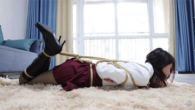 闲话说的不少,下面开始介绍剧情:一把锋利匕首抵着含含的脖子,凭她只要动一下,很可能就会危及到自己的性命!含含的上半身已经被人贩黑子用麻绳捆绑地结结实实,套着黑色丝袜与长靴的双腿不停地抖动着,想要寻找机会脱身。她不停的喊着,“放了我吧,求你放了我吧,求求你了!”,但都无济于事。黑子此时开口,“别说话,给我消停点。老实点,别给我乱动”,随及从腰中掏出一捆新的绳子,先绕着含含的腰上围了两圈。含含似乎意识到了什么,拼命的挣扎与尖叫。黑子将绳子的一端从含含的身后直接穿过胯下和酒红色短裙,再与腰前的绳子相连结,紧紧捆在一起。下面的绳子不停来回摩擦着,令含含即害羞又控制不住地更加来回扭动自己穿着黑色包臀丝袜的双腿…