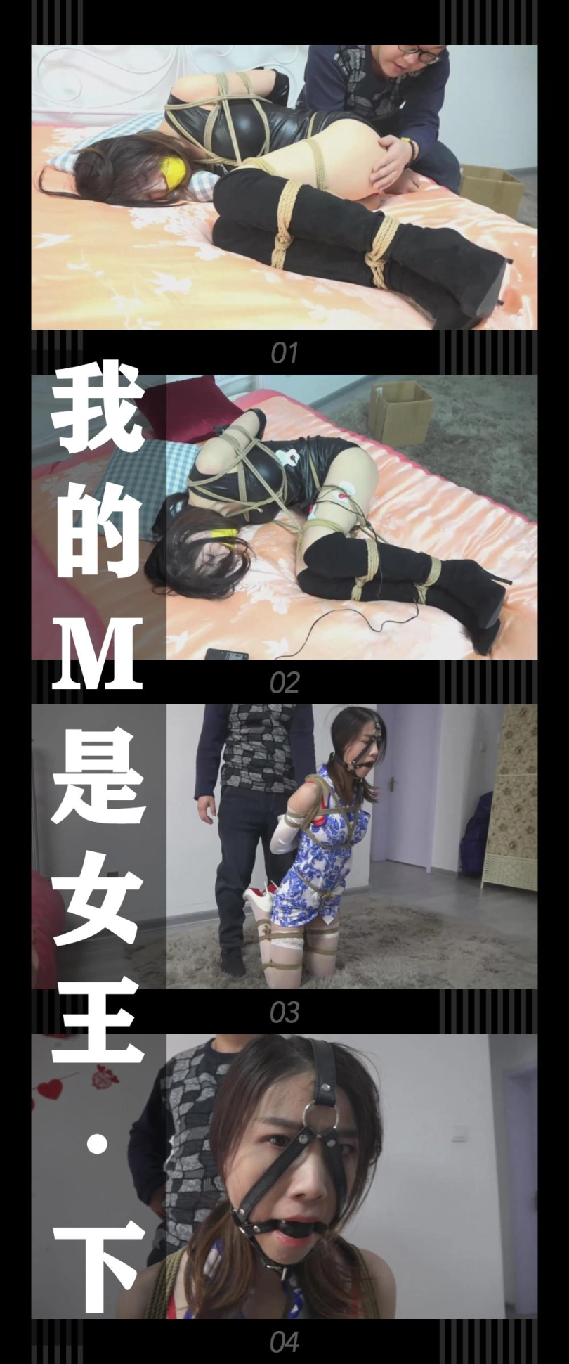 被迫换上旗袍,跪缚于镜头前,怒火只能化为愤恨的眼神和呜呜声!