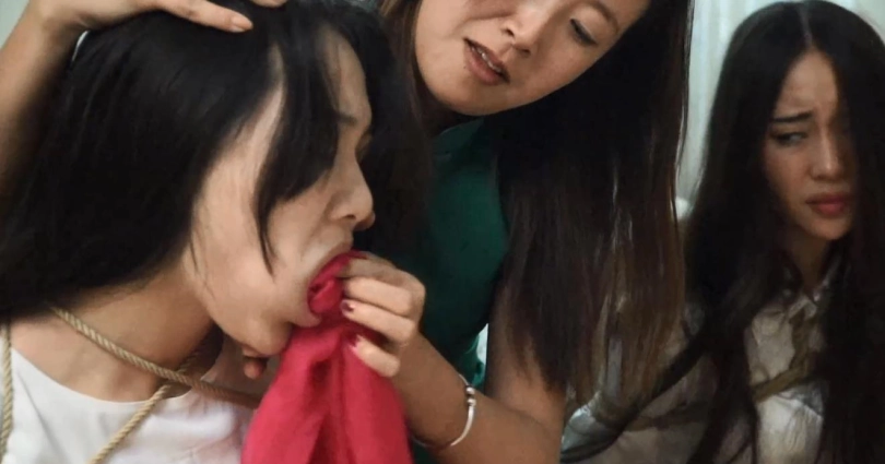 有当年的人气模特邢佳妮,整体剧情大概就是 两口子,一男一女,强行捆绑两位肉丝美女,对话丰富!然后采用各种物品进行堵嘴!包括 连裤袜,口球,丝巾,甚至还有卫生巾,纸巾等!最后直接驷马捆绑放置在地板上,无助的挣扎.....