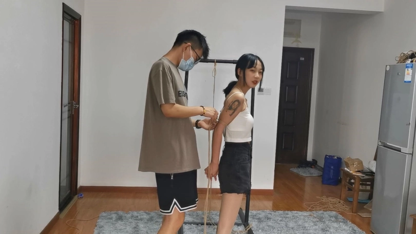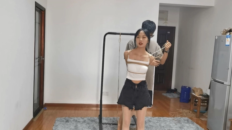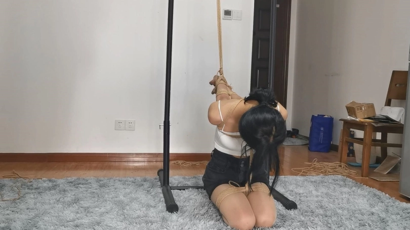 面容娇小、身材完美、特别爱笑的宝妹。模特长得很的显小,但是身材却一点也不显小,该瘦的地方瘦,有肉的地方有肉,穿上小吊带绳子一上身显得身材凹凸有致,极具诱惑力。给模特绑的是及其严厉的欧式直臂,妹子身体特别软绑的很紧也能接受,然后把宝妹双腿并拢折叠绑跪在地上,再从后边把手臂吊起来,前边再用绳子固定使她直不起身,就这样留着小妹妹一个人在房间里挣扎。