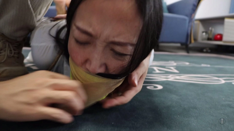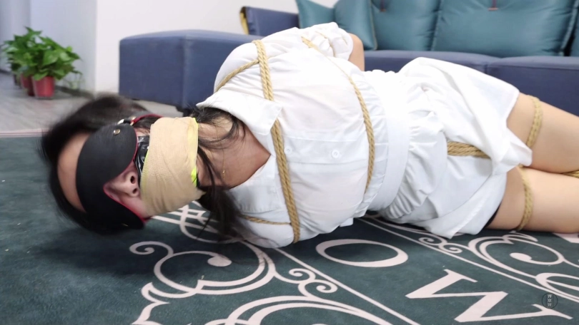 文清扭动身体在地上来回呜呜呜闷哼挣扎,可这次不管怎么挣扎绳索纹丝未动,始终无济于事,最终精疲力尽的她减小挣扎幅度,低下头躺平等待家人回来解放她。